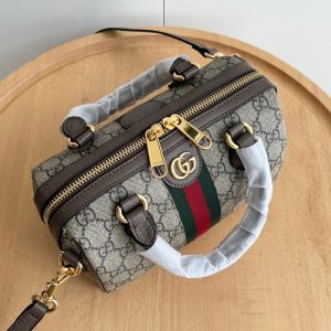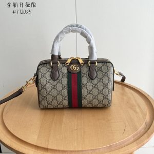 Model: 772053 Size: 14 (length) x 21.5 (width) x 11.5 (thickness) cm Canvas has become a signature fabric in the world of design. This fabric frequently appears in the new collections launched by the brand. This mini handbag is adorned with a pattern of interwoven brand classic letters throughout.