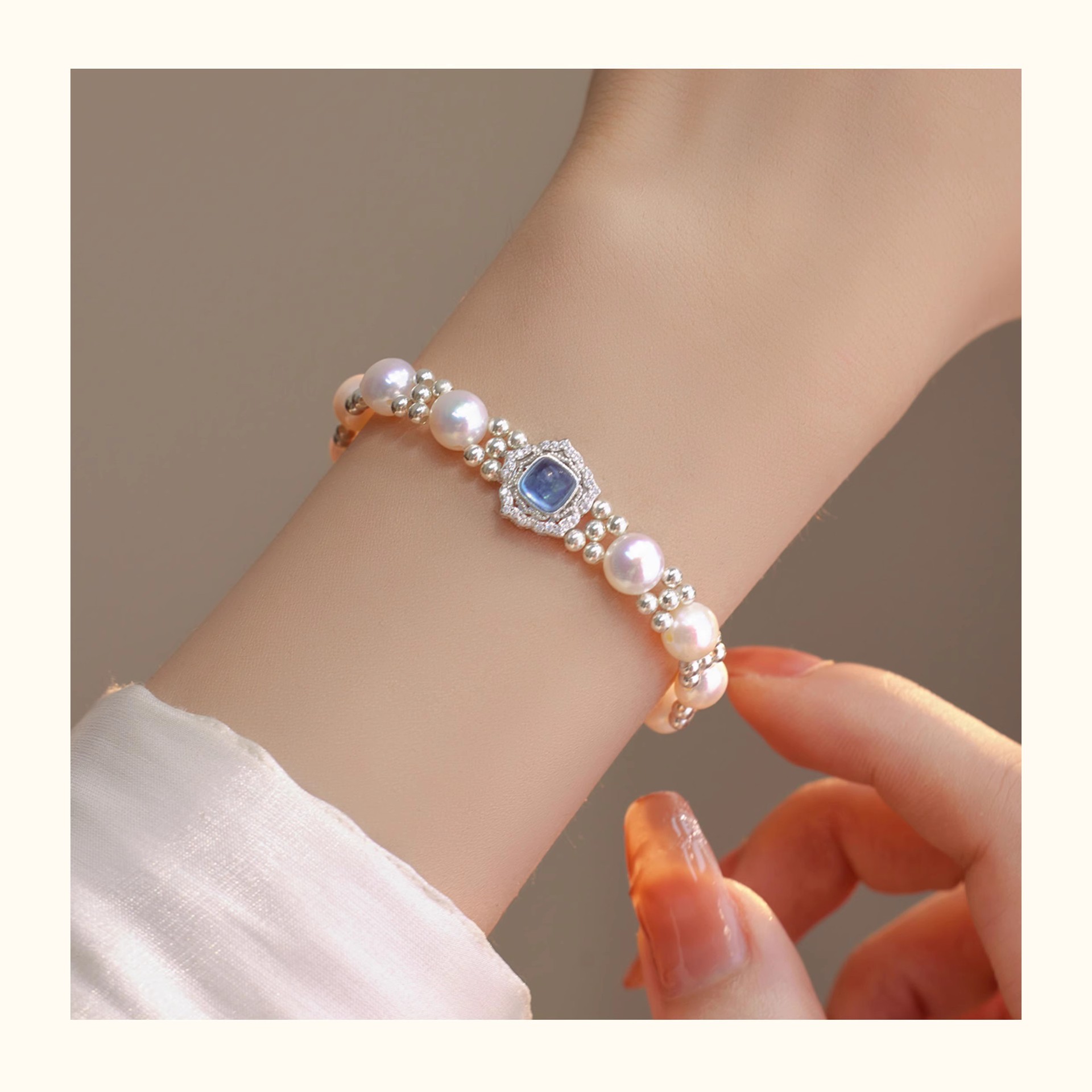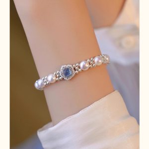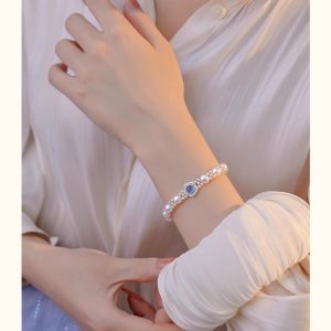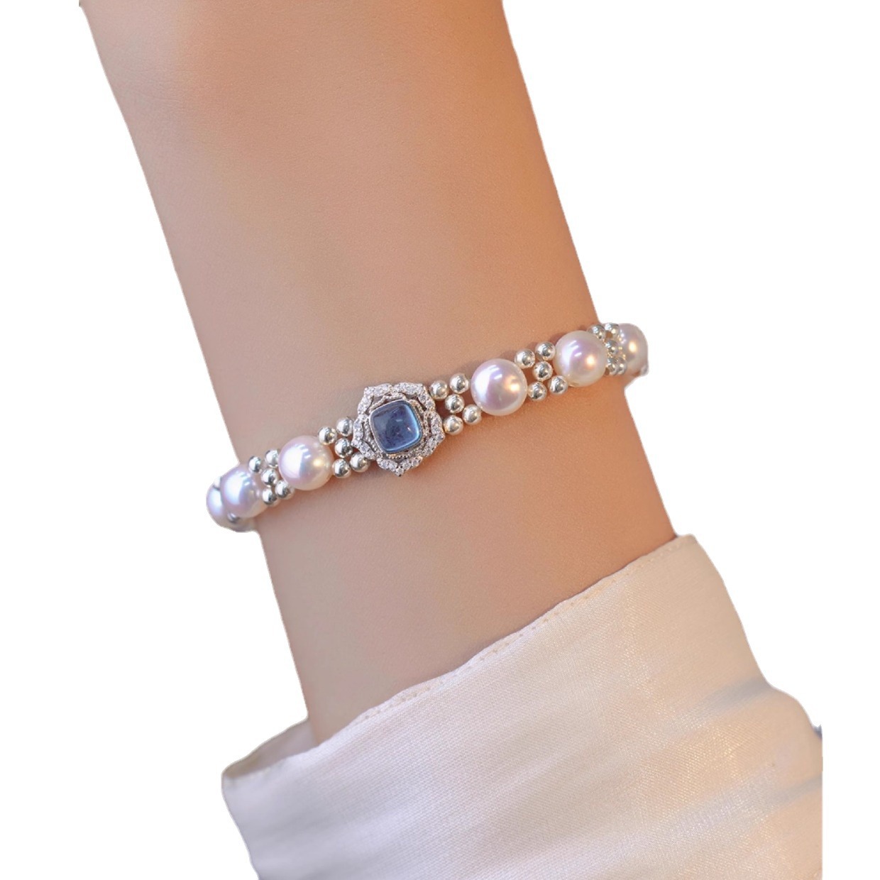 Pure silver Fu Lu Shuang Quan natural white lapis lazuli conch-shaped bracelet