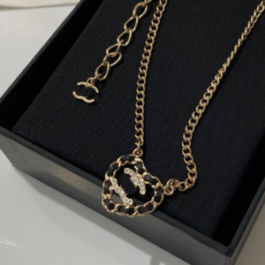 Black heart-shaped leather beaded necklace with hollow design
