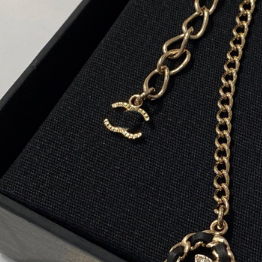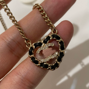 / Black heart-shaped leather beaded necklace with hollow design