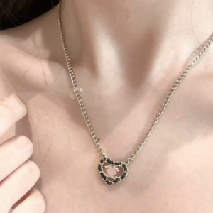 Black heart-shaped leather beaded necklace with hollow design quantity