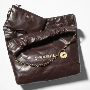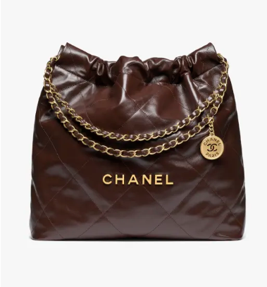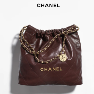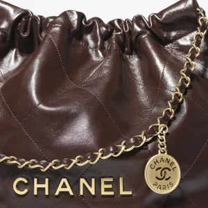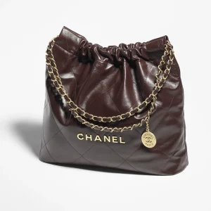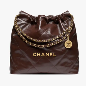 / CHANEL 22 handbag Shiny calf leather and golden metal dark brown
