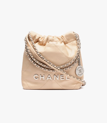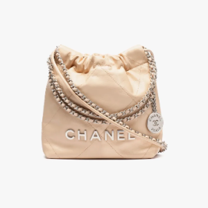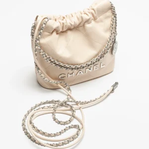 CHANEL 22 Mini Handbag Shiny calf leather and silver metal beige