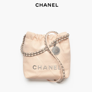 / CHANEL 22 Mini Handbag Shiny calf leather and silver metal beige