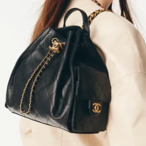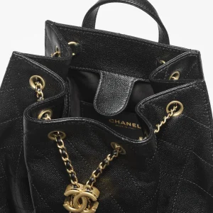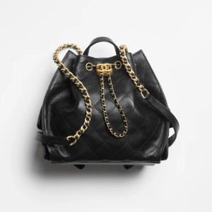 / CHANEL 25 Medium Backpack Particle embossed calf leather and gold metal black