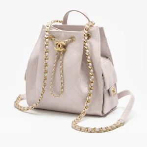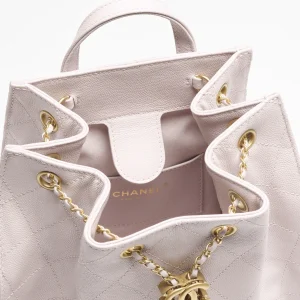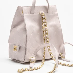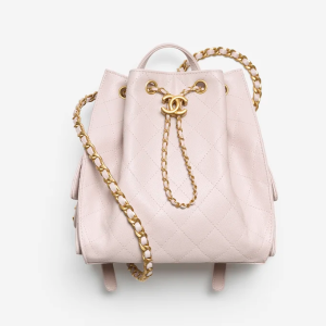 / CHANEL 25 Medium Backpack Particle embossed calf leather and gold metal Pale pink