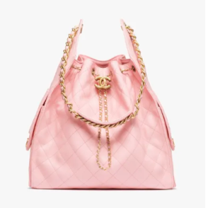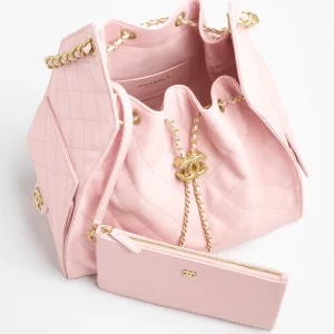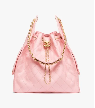 / CHANEL 25 Medium Handbag Particle embossed calf leather and gold metal Pale pink