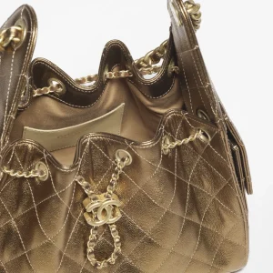 CHANEL 25 Small Handbag Metallic textured particles embossed cowhide with golden metal Deep Gold quantity