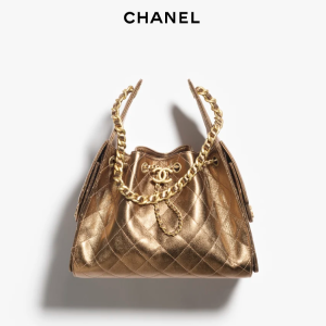 / CHANEL 25 Small Handbag Metallic textured particles embossed cowhide with golden metal Deep Gold