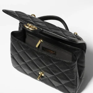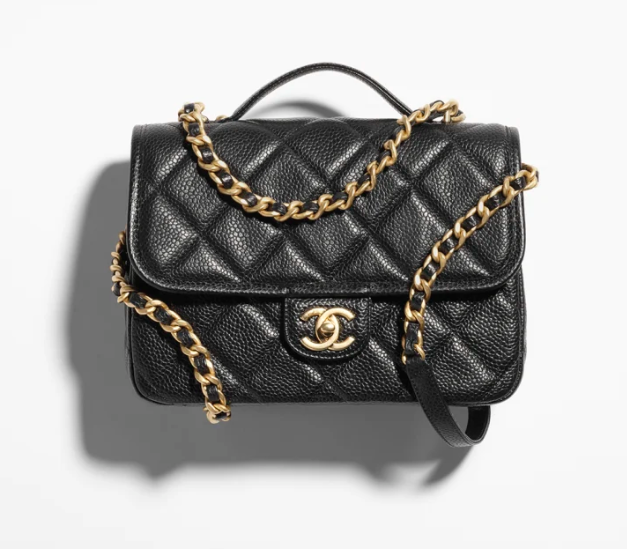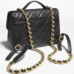 / CHANEL backpack Particle embossed shiny calf leather with golden metal black