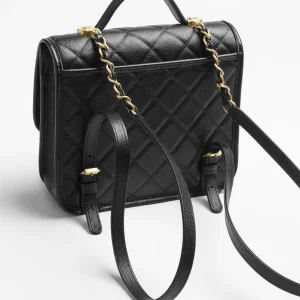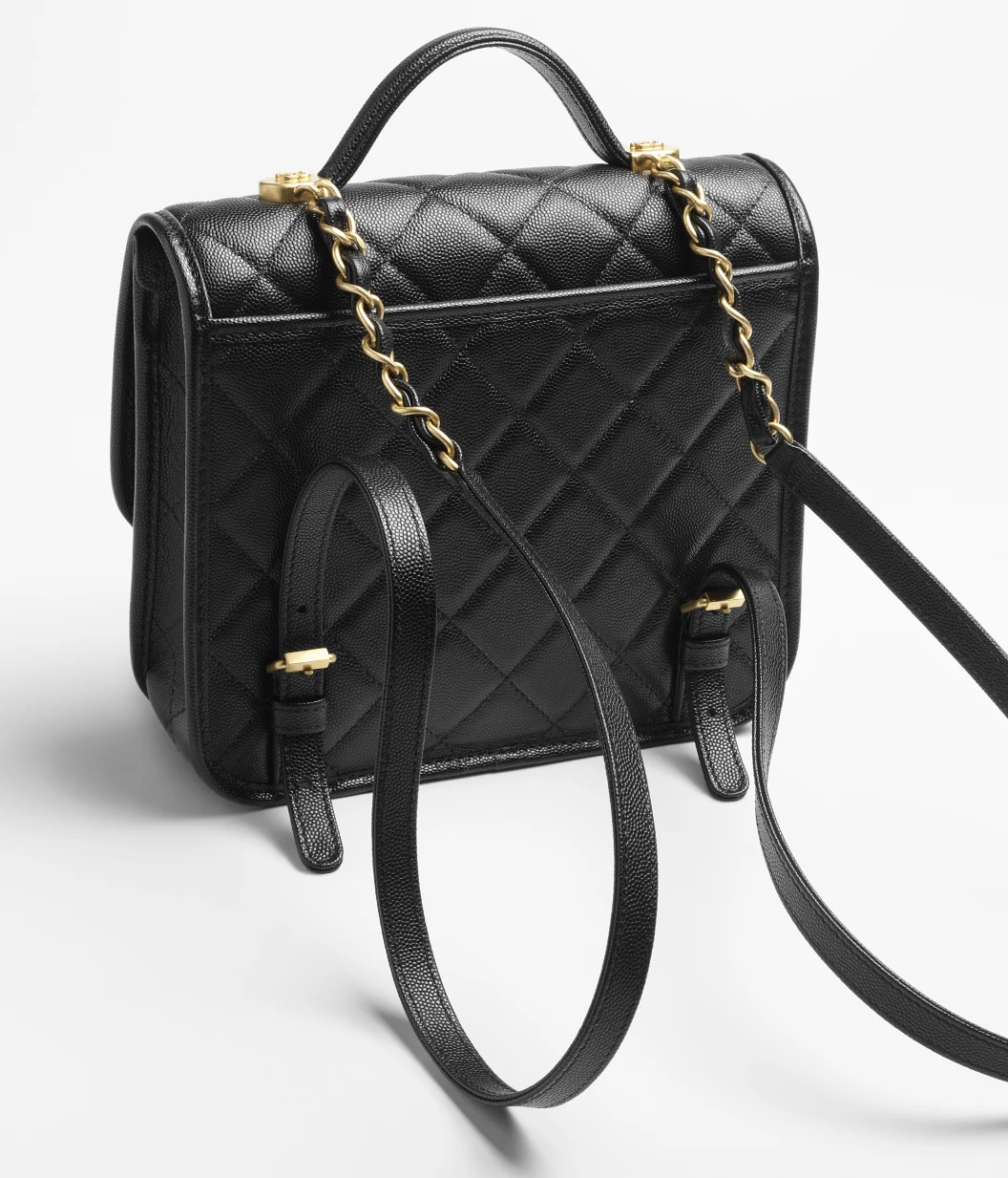 / CHANEL backpack Particle embossed shiny calf leather with golden metal black