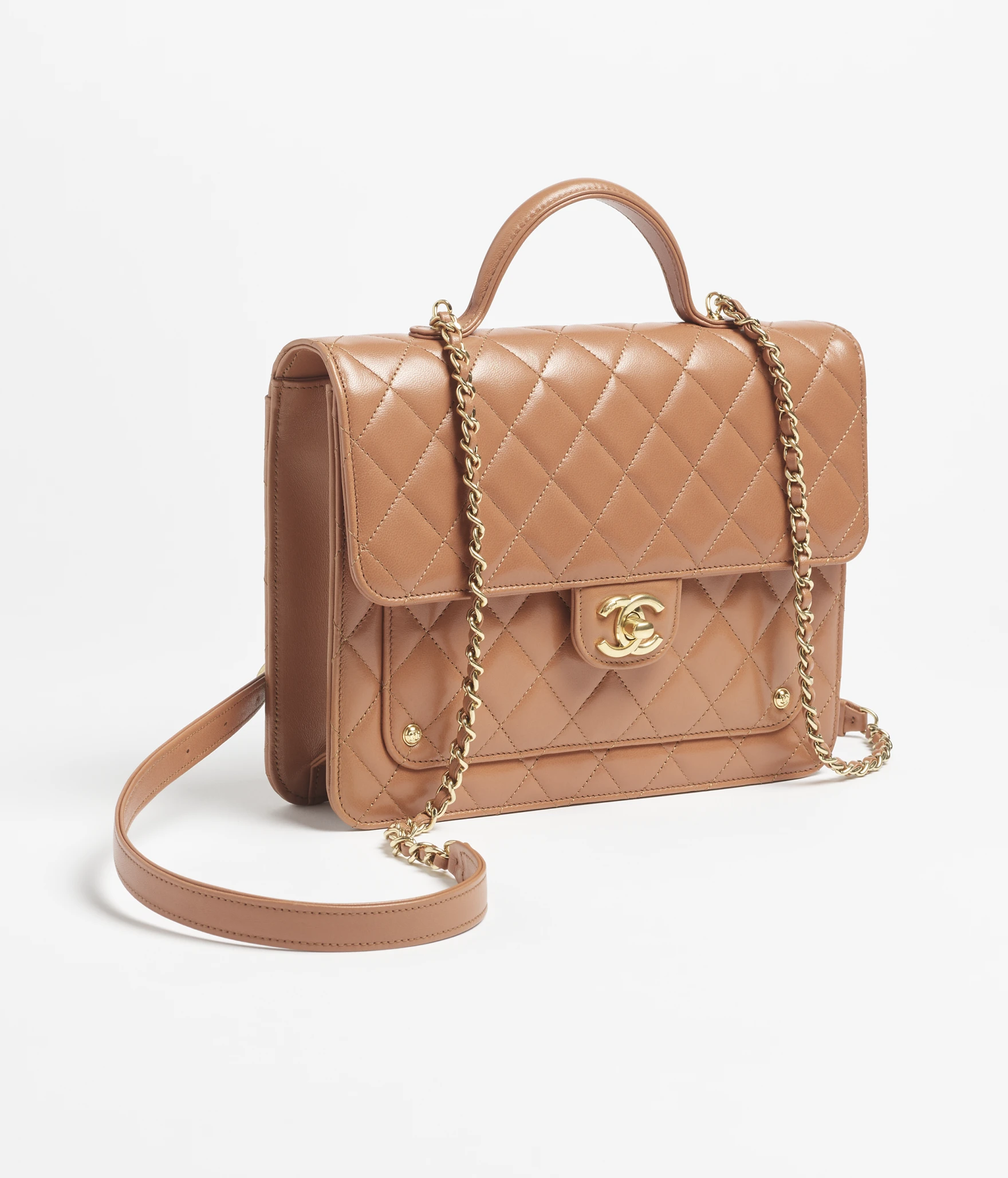 / CHANEL backpack Polish lambskin and golden metal camel