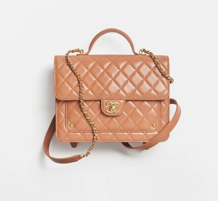 CHANEL backpack Polish lambskin and golden metal camel quantity