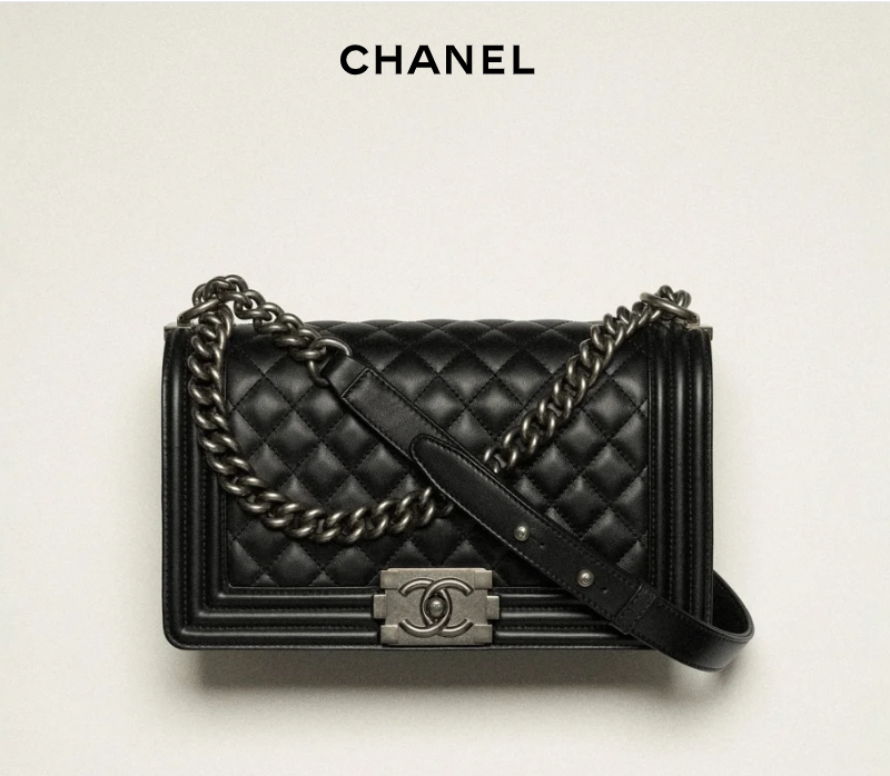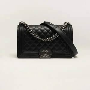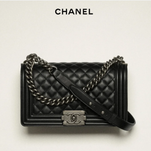 / CHANEL BOY CHANEL Cap Bag Calfskin and ruthenium textured metal black