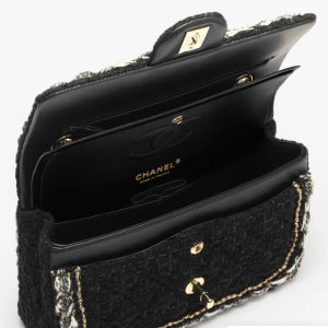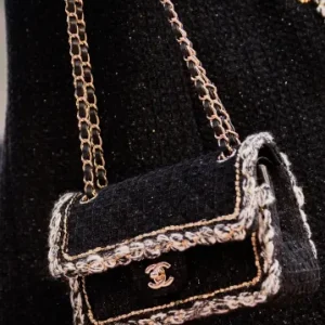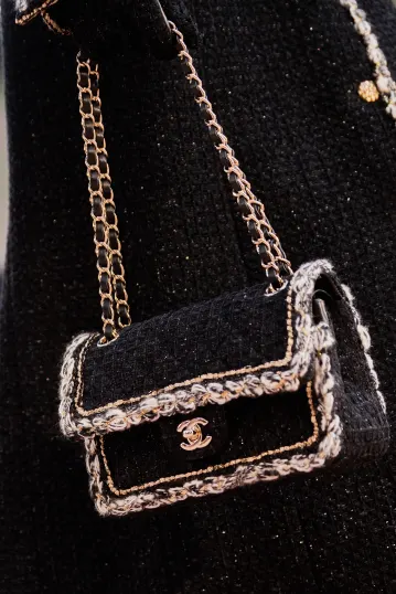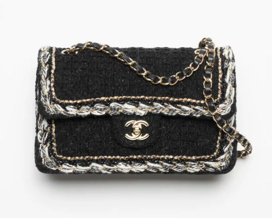 / CHANEL Collection Classic Trumpet Handbag Cotton twill soft flannel with gold metal