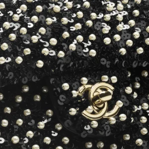 CHANEL evening bag Glitter, artificial pearls, and golden metal quantity