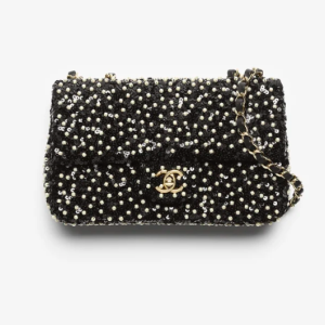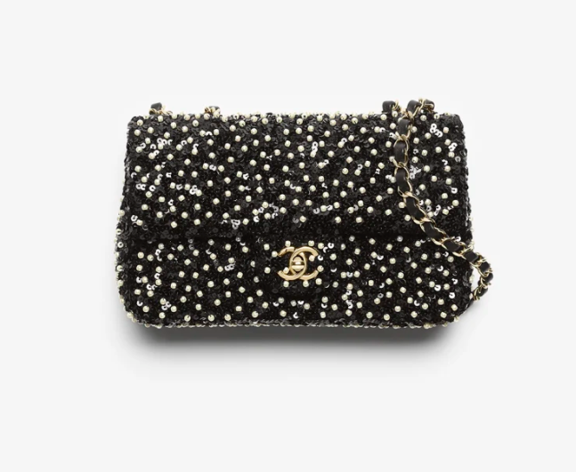 / CHANEL evening bag Glitter, artificial pearls, and golden metal