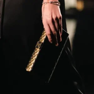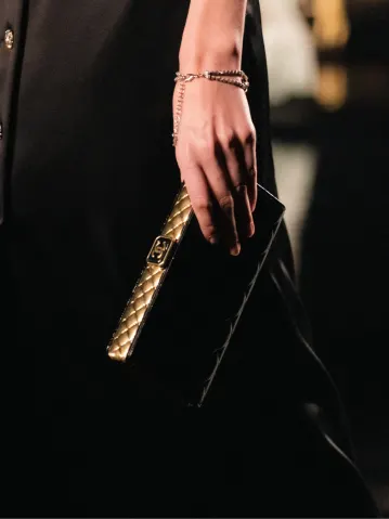 / CHANEL evening bag Particle embossed paint finish calf leather