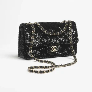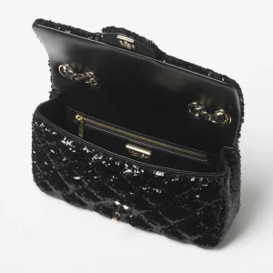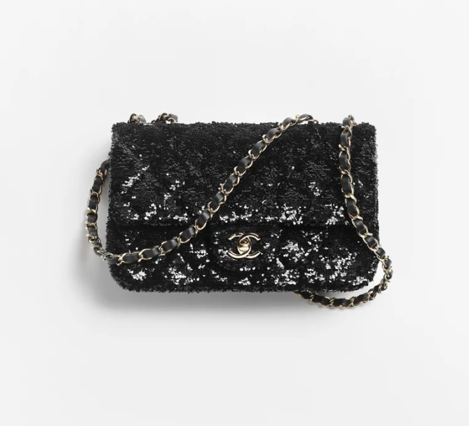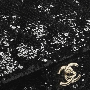 / CHANEL evening bag Quilted sequins and golden metal black