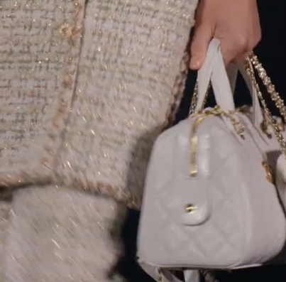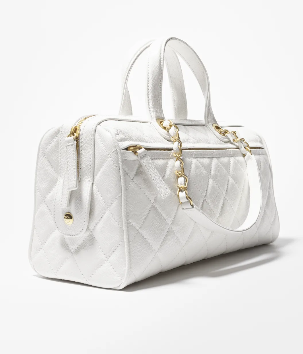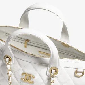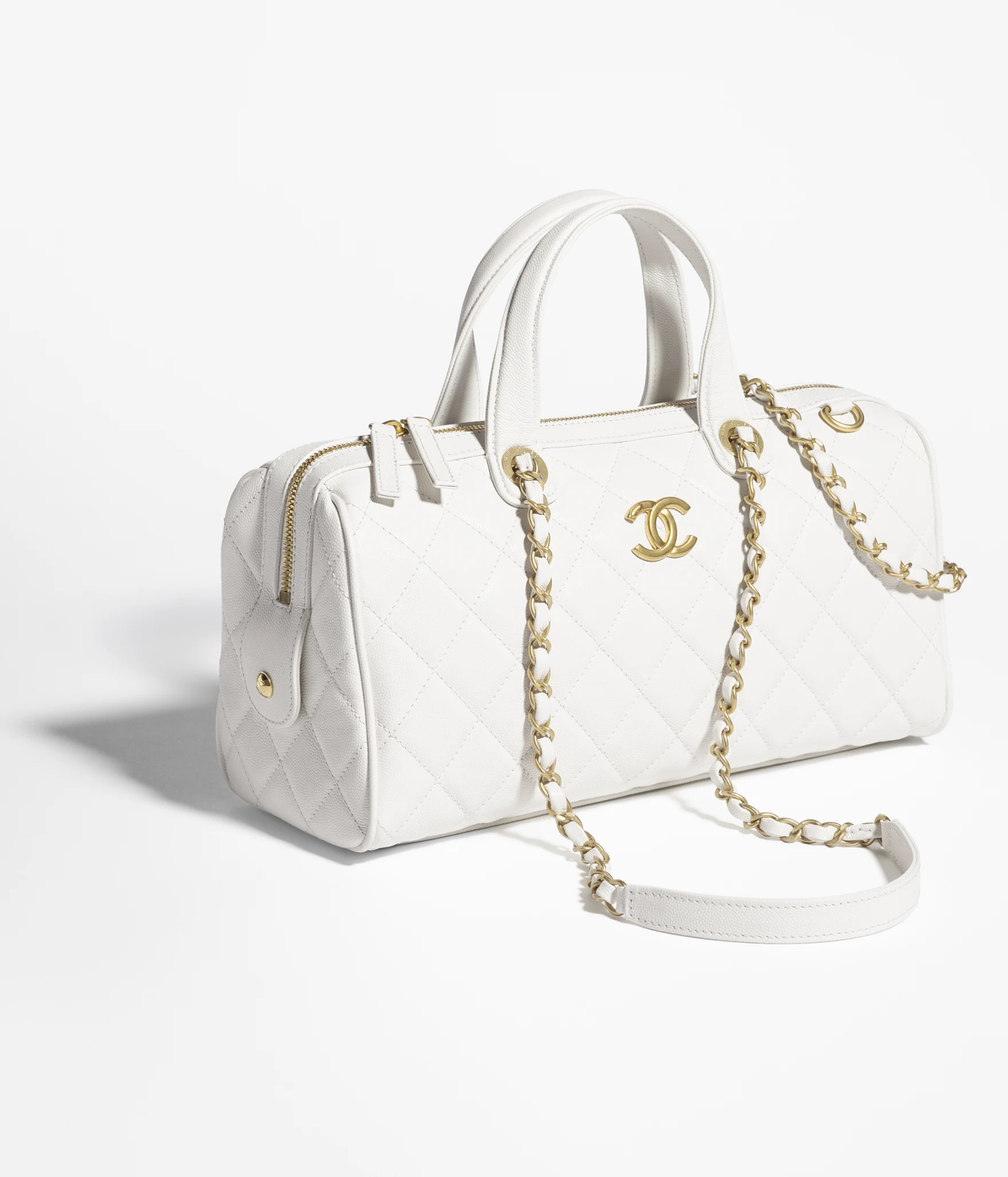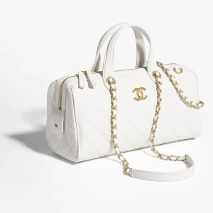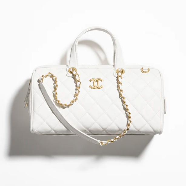 / CHANEL Large bowling bag Particle embossed shiny calf leather with golden metal white