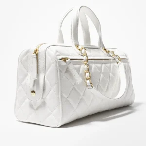 CHANEL Large bowling bag Particle embossed shiny calf leather with golden metal white quantity