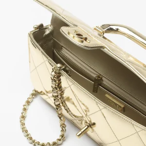 CHANEL Large cap bag with handle Metallic texture mirror effect calf leather