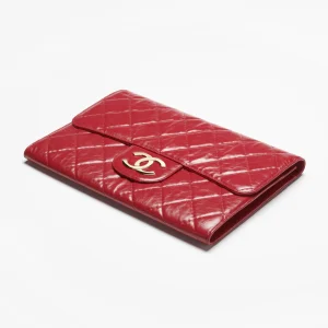 CHANEL Large carry on bag with bright wrinkles and small cowhide red quantity