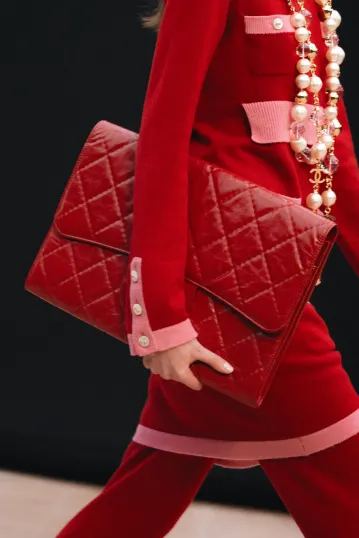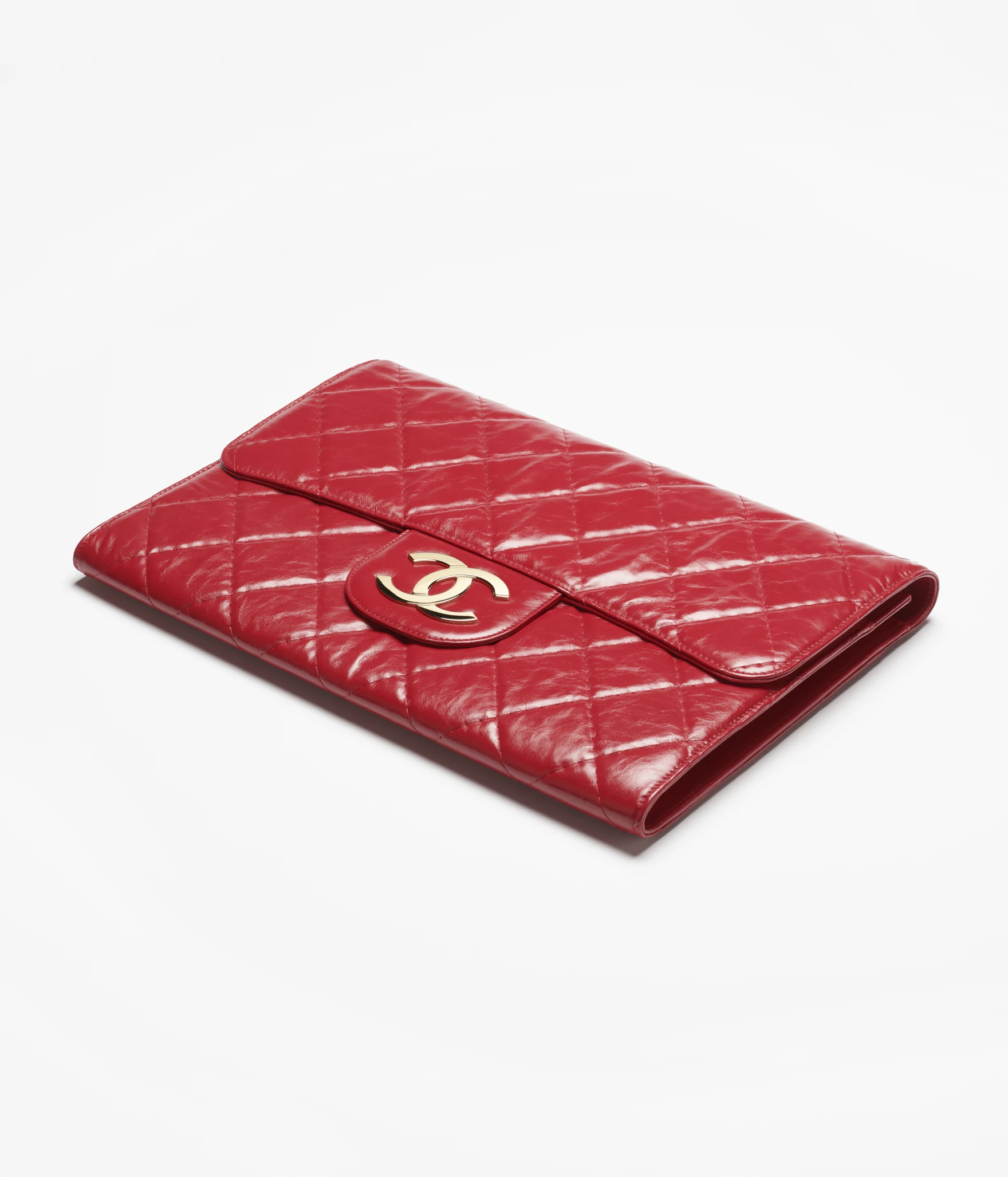 CHANEL Large carry on bag with bright wrinkles and small cowhide red