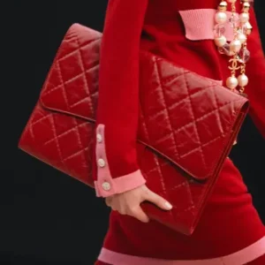 / CHANEL Large carry on bag with bright wrinkles and small cowhide red