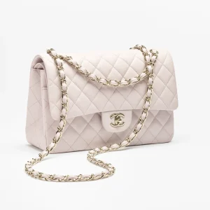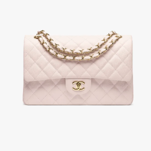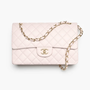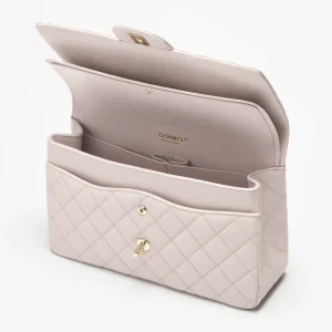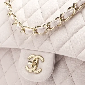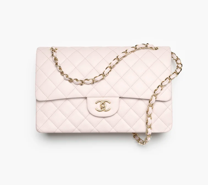 / CHANEL Large classic handbag with embossed grain and glossy calf leather