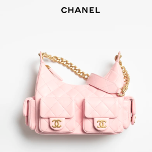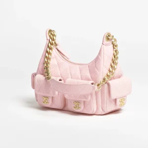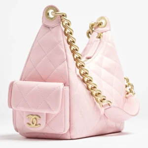 / CHANEL Large hippie bag Polish lambskin and golden metal Pale pink