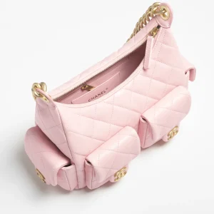 CHANEL Large hippie bag Polish lambskin and golden metal Pale pink