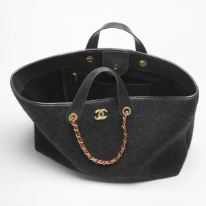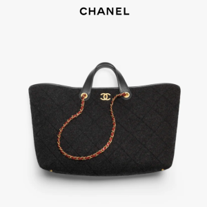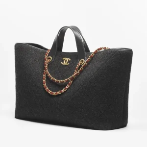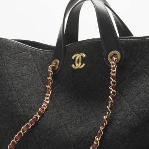 / CHANEL MAXI shopping bag Wool and Golden Metal dark gray