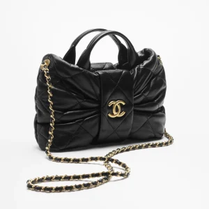 / CHANEL Mini bow handbag Polish lambskin and golden metal black