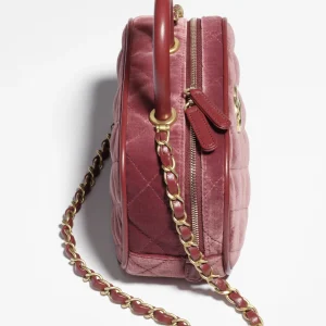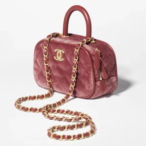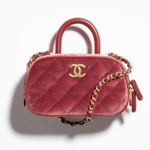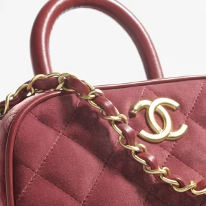 / CHANEL Mini bowling bag made of velvet, calf leather, and burgundy