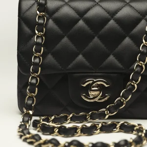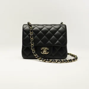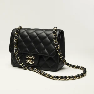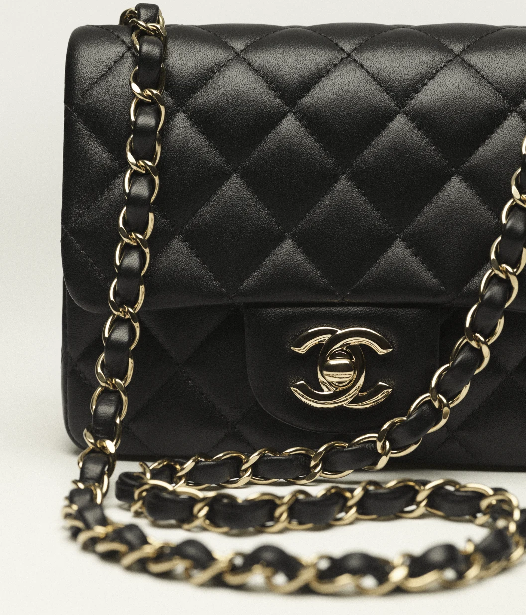 / CHANEL Mini Classic Handbag Sheep leather and gold metal black