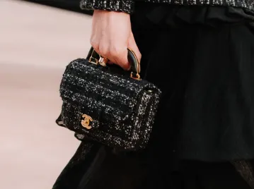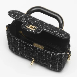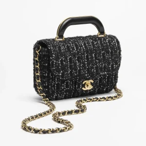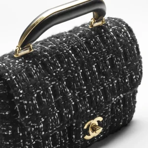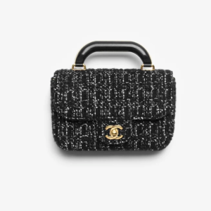 / CHANEL Mini hood bag with handle Kashmir twill tweed and gold metal Black and White