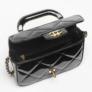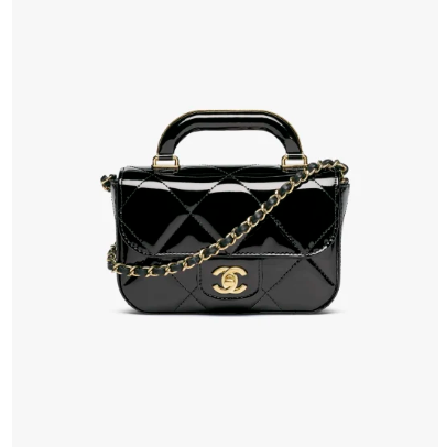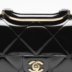 / CHANEL Mini hood bag with handle Metallic texture mirror effect calf leather and golden metal black