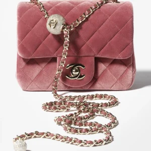 CHANEL Mini hood package with velvet, crystal, and gold metal, wine red