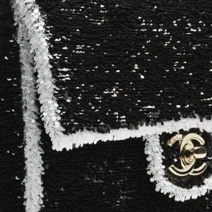 CHANEL Mouth cap bag Glitter and Golden Metal Black and White