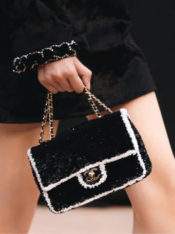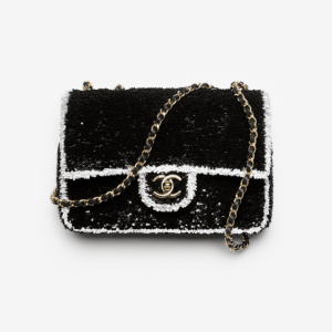 CHANEL Mouth cap bag Glitter and Golden Metal Black and White quantity