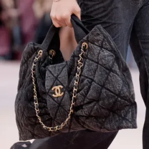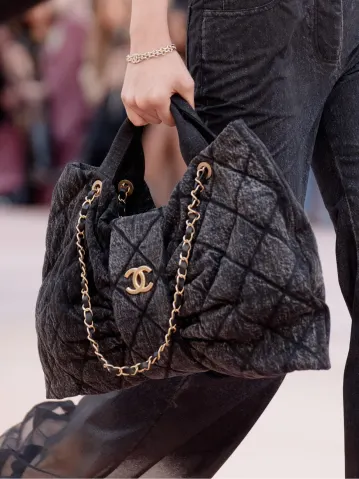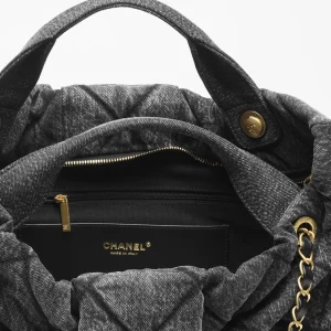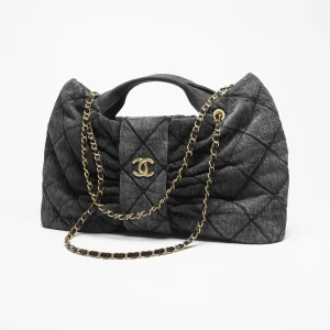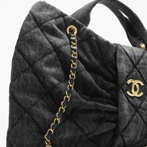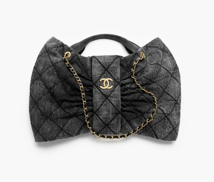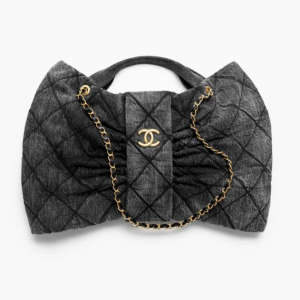 / CHANEL Oversized bow handbag Washed denim and golden metal black