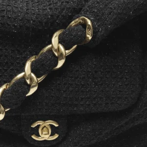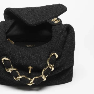 CHANEL Oversized hippie bag Cotton twill soft fabric and gold metal black