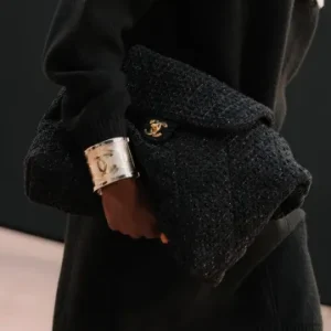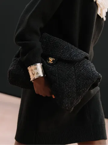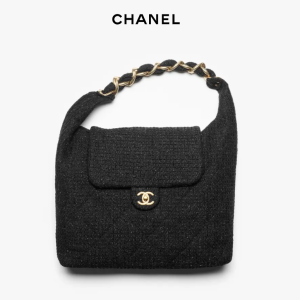 / CHANEL Oversized hippie bag Cotton twill soft fabric and gold metal black
