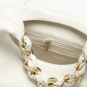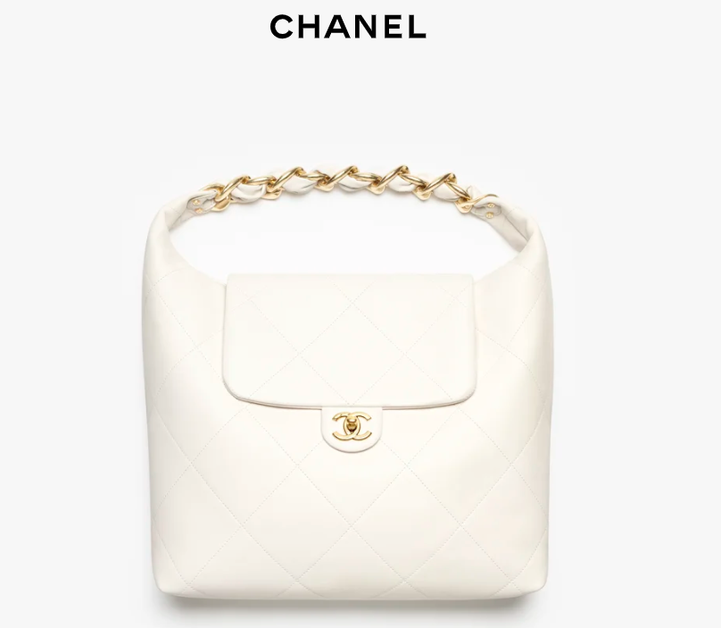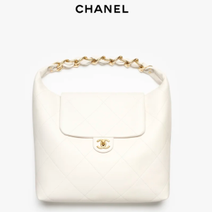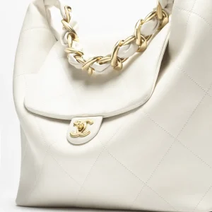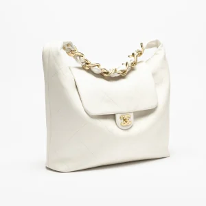 / CHANEL Oversized hippie bag Shiny calf leather and golden metal white