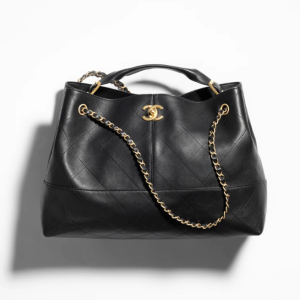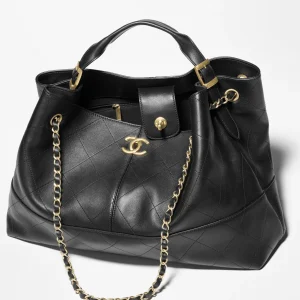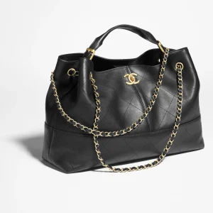 / CHANEL Shopping bag Bull leather and golden metal Black