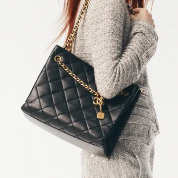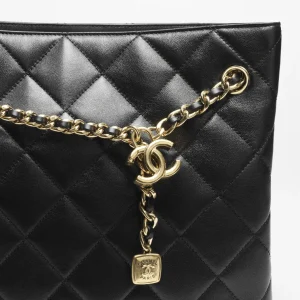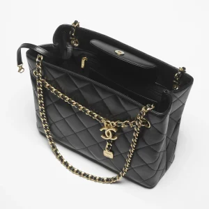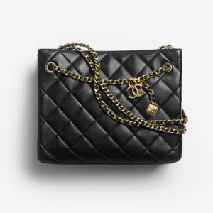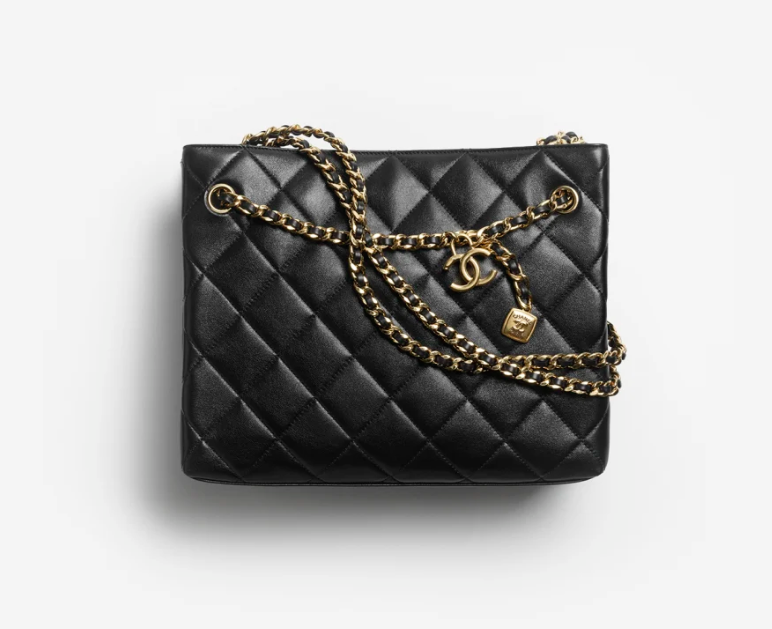 / CHANEL Small shopping bag Polish lambskin and golden metal black