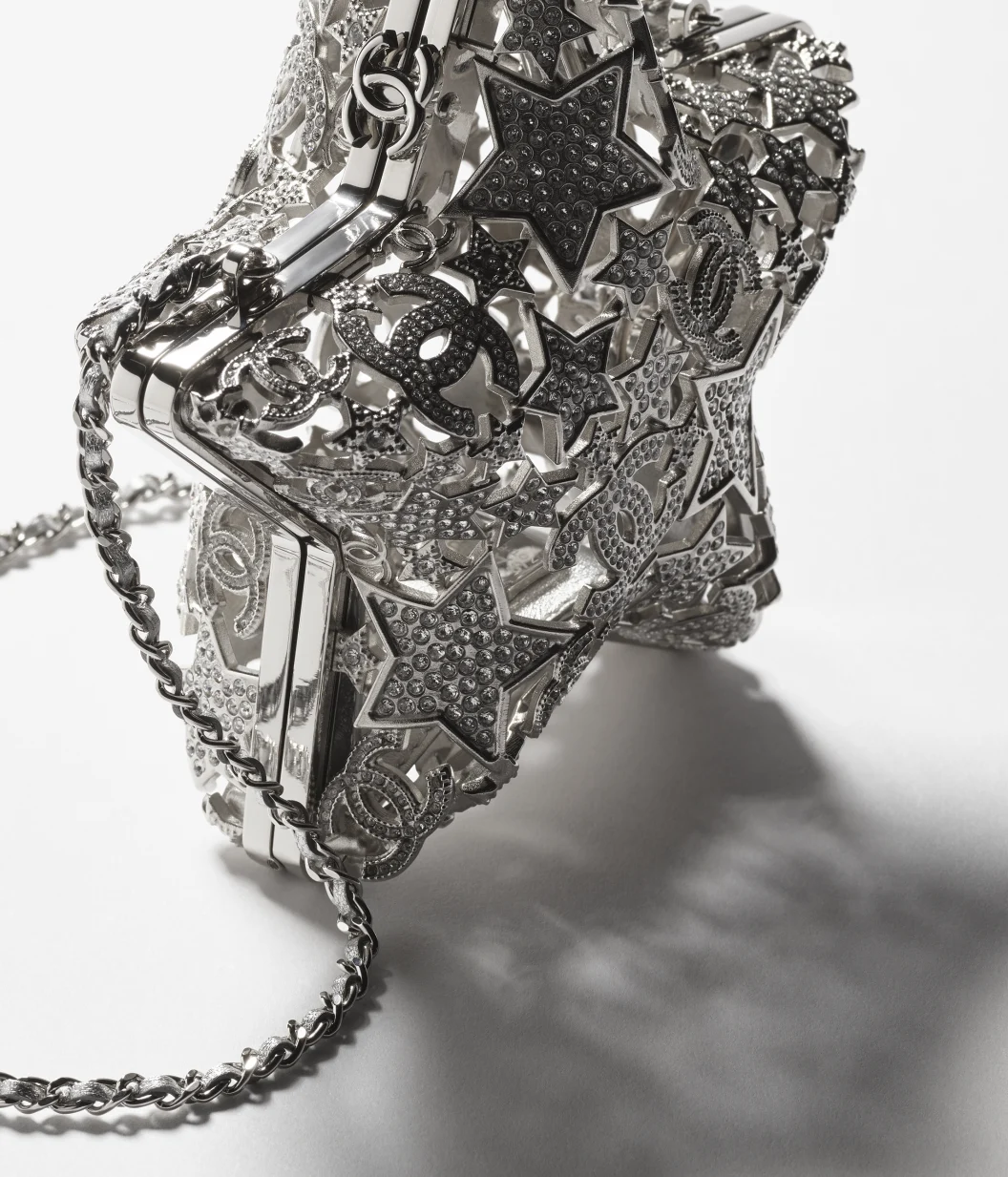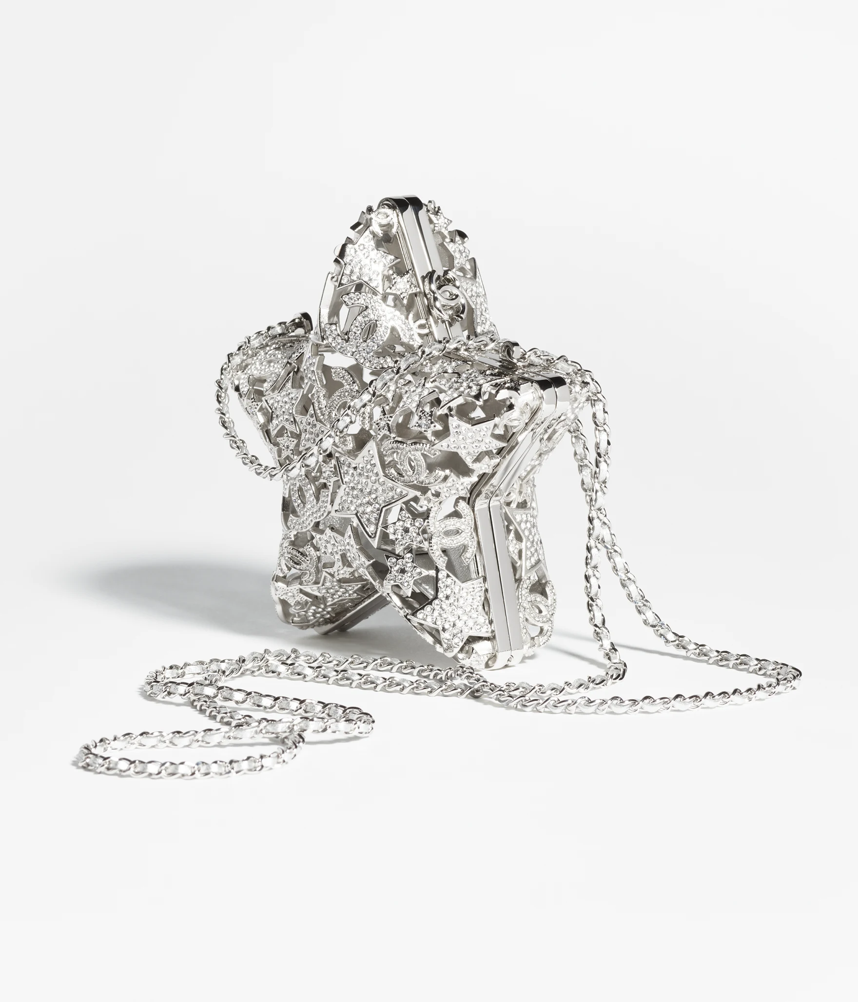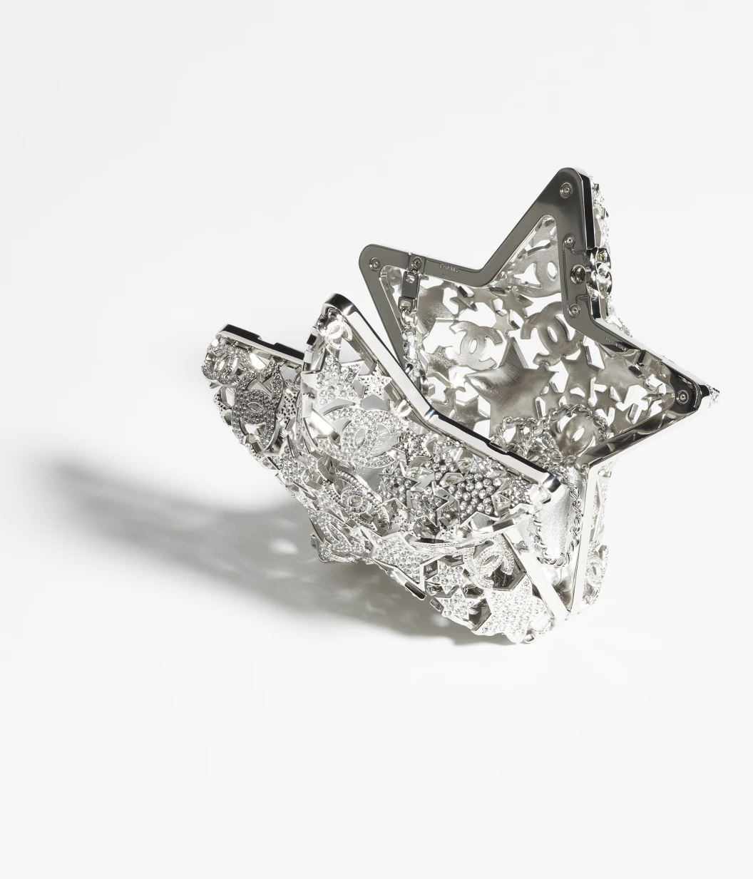 CHANEL Star shaped hard dinner bag silver metal quantity