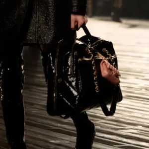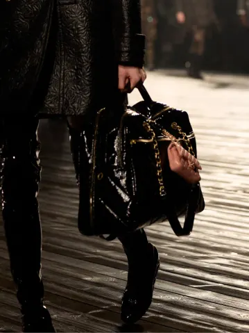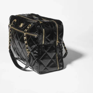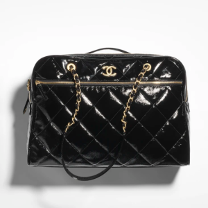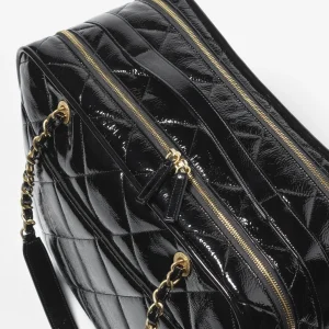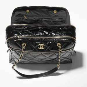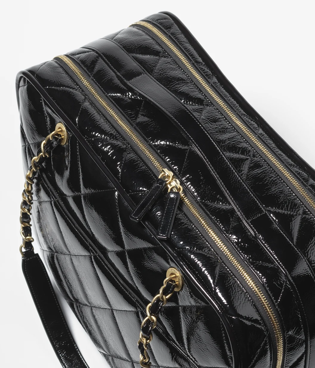 / CHANEL Travel bag Fur grain small cowhide with metallic gold Black