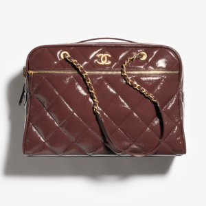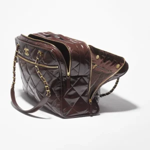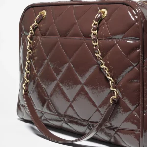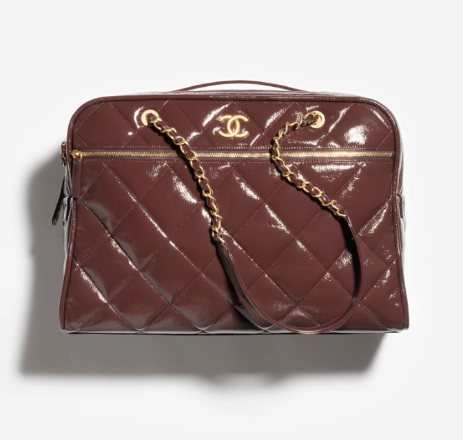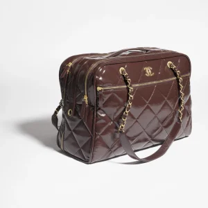 / CHANEL travel bag Painted folded calf leather and golden metal dark brown